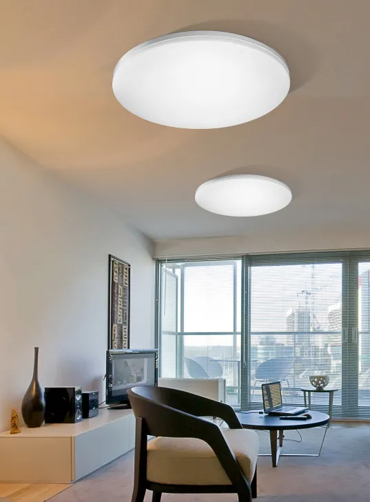 Dzisiejsze lampy LED sufitowe to coś więcej niż tylko źródło światła. Wiele modeli oferuje dodatkowe funkcje, takie jak możliwość regulacji natężenia światła (ściemnianie), zmiany barwy (od ciepłej, przez neutralną, po zimną) czy sterowanie za pomocą aplikacji mobilnej i systemów smart home. Tego typu funkcjonalność pozwala tworzyć różne scenariusze oświetleniowe - jasne i chłodne światło do pracy, ciepłe i rozproszone do relaksu czy nastrojowe wieczorne oświetlenie.